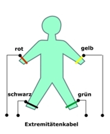 Danach werden die Patientenkabel (Extremitätenkabel) mit den Elektroden verbunden und
