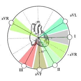 Praktische Anwendung: Der Cabrerakreis erleichtert die Interpretation des EKG, weil man auf einen Blick erkennt,