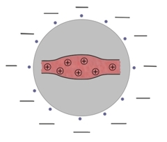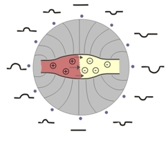 von dem ein elektrisches Feld ausgeht. Die Elektroden zeigen das Feld an. Je stärker das Feld, desto höher