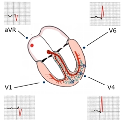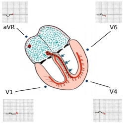 Lagetyp von den Brustwandableitungen ( typ.V3-V6 ) und einigen Extremitätenabl. weg,