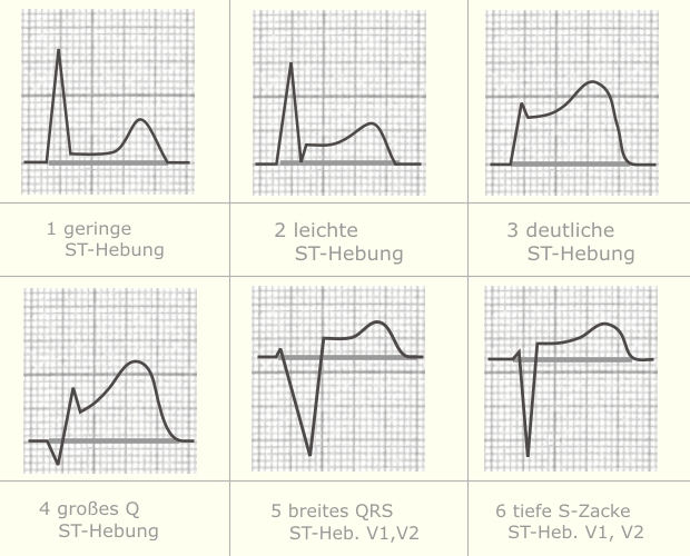 5 breiter QRS-Komlex und ST-Hebung in V1, V2