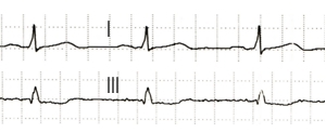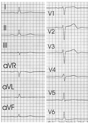 Zudem ist im Vergleich zum 12-Kanal-EKG ist Ableitung I deutlich kleiner. Die Bestimmung des Lagetyps aus dem Monitor-EKG ergibt einen Mitteltyp, da Abl. II die höchste ist.