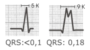 in der Form veränderten QRS-Komplexen. Je nach Breite der QRS-Komplexe spricht man von