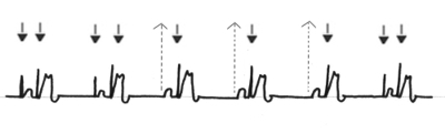 und bei vorhandener Überleitung auch die ventrikuläre Sonde inhibiert.(3+4.QRS)